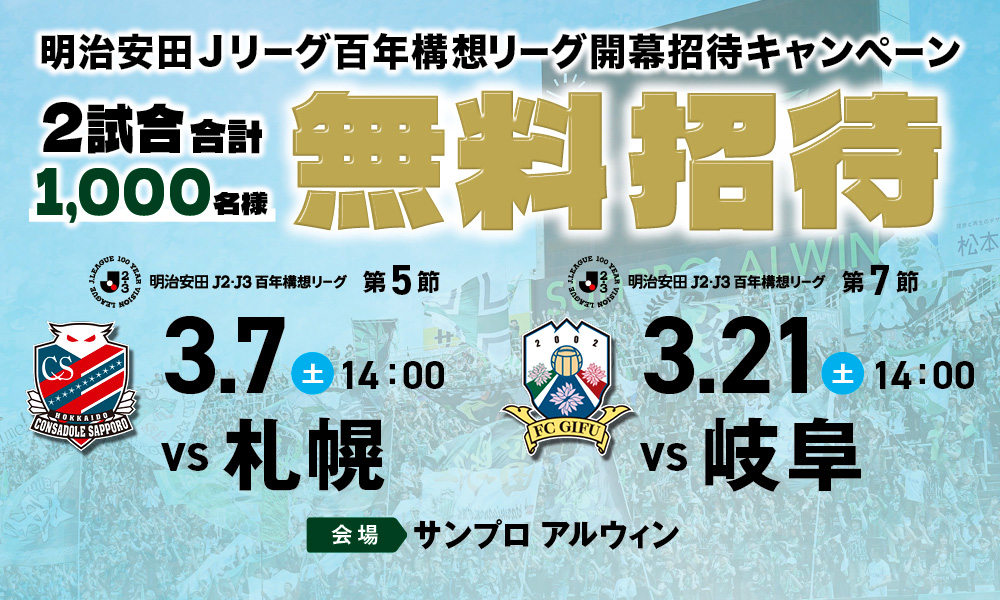 明治安田J2・J3百年構想リーグ ホームゲーム観戦チケット情報