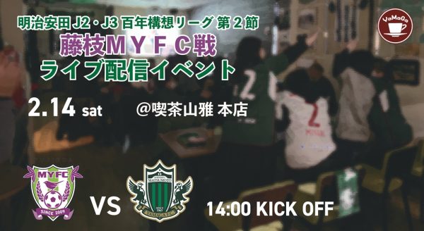 【喫茶山雅飯田店】2/14(土)アウェイ・藤枝戦「ライブ配信イベント」開催のお知らせ