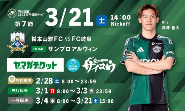 - 3/7(土)「明治安田J2・J3百年構想リーグ 第5節 北海道コンサドーレ札幌戦」ホーム開幕戦チケット販売について