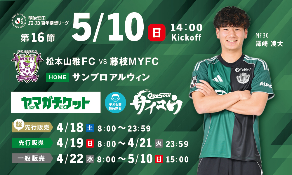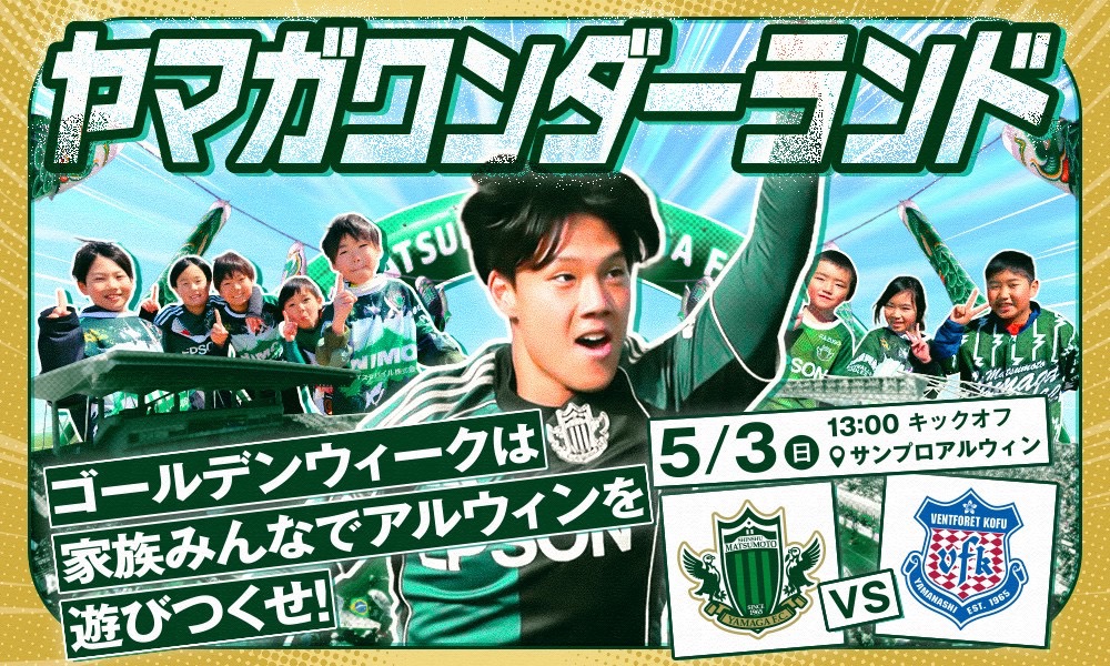 - 4/29(水・祝)磐田戦・5/3(日・祝)甲府戦「ヤマガワンダーランド」特設サイト公開のお知らせ