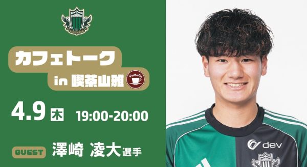 4/9(木)カフェトーク(澤崎 凌大選手)in 喫茶山雅 開催のお知らせ