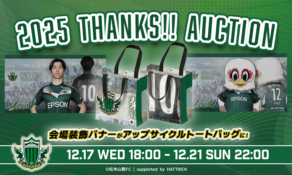 12/17(水)より「2025シーズン サンクスオークション第2弾 ~松本山雅FC SDGs アップサイクルオークション~」を開催