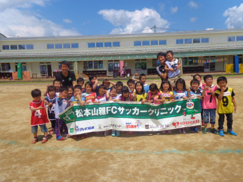 5月18日(木)安曇野市南穂高認定こども園の年長さん55名を対象に巡回指導を行い、松本山雅FCより小林コーチと上原コーチが参加しました。