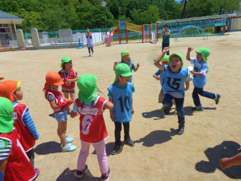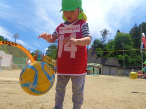 6月5日(月)明科北認定こども園の年中さんと年長さん、約30名を対象に巡回指導を行い、松本山雅FCより久保コーチ、加藤コーチが参加しました。
