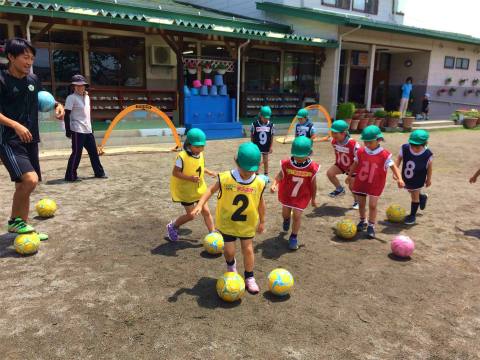 6月22日(木)松本中央幼稚園の年長さん約40名を対象に巡回指導を行い、松本山雅FCより小林容太コーチと加藤コーチが参加しました。