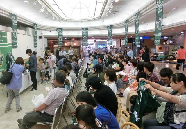 前日のリーグ戦勝利の興奮が冷めやらぬ中、100名以上のファン、サポーターの皆さんが2人のサイン会に足を運んでいただきました。