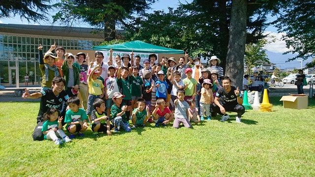 その後、親子で楽しく体や頭を使った運動を行い、大人も子どもも、みんな汗びっしょりになりながら芝生の上を駆けまわっていました。