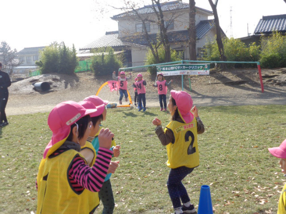 11月17日(金)に今井保育園の年長さん、13名を対象に巡回指導を行い、松本山雅FCより久保コーチと上原コーチが参加しました。