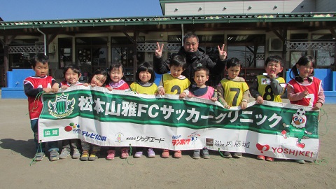 2月26日(月)松本中央幼稚園の年少さんを対象に巡回指導を行い、松本山雅FCより藤本コーチと寺島コーチが参加しました。