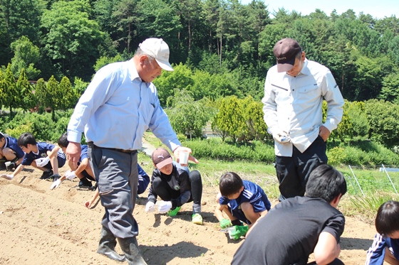 快晴の中、松本山雅FC U-12の選手・一般参加の皆様で大豆「あやみどり」の種まきを行いました。