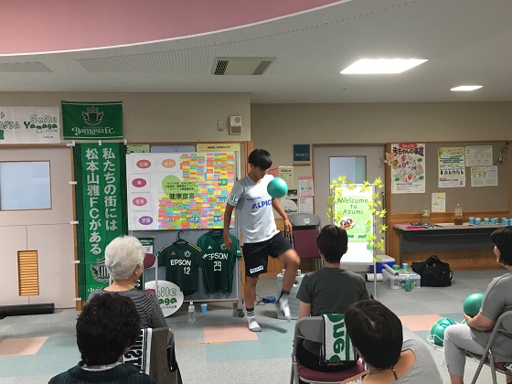 松本山雅FC所属選手やスタッフが松本市内の「福祉ひろば」を巡回し、運動指導や講話などを行う健康講座です。