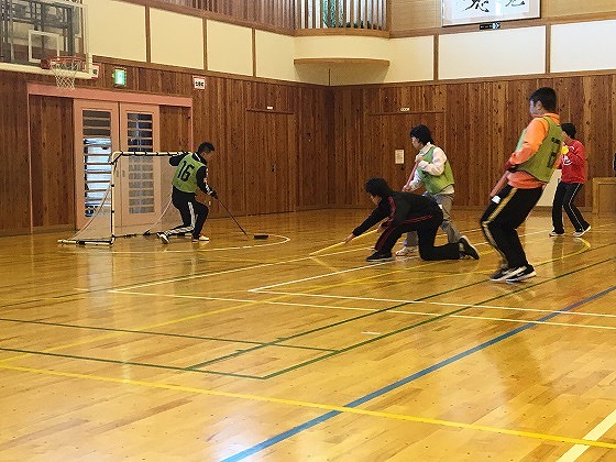 今回はフロアホッケーとサッカーを行い、約2時間参加者の皆さんと楽しく運動をしました。