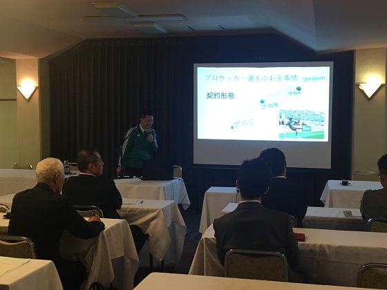 長野県資源循環保全協会ということで、サッカー界におけるリサイクル(リユース)、サッカー選手のセカンドキャリアについての話の中から、松本山雅FCのOBが現在クラブに残り、様々な角度から携わっていることもお話させていただきました。