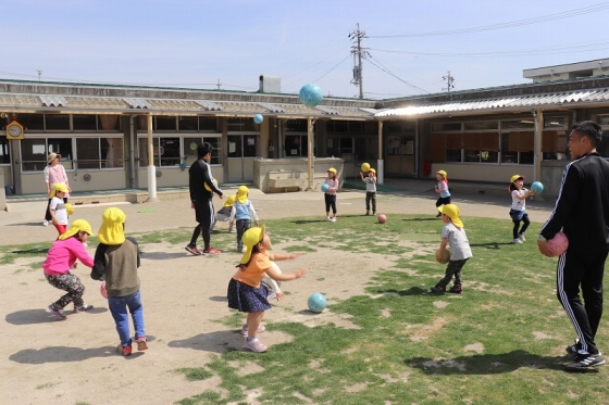 4月23日(火)笹部幼稚園の年長さん33名を対象に巡回指導を行い、松本山雅FCスクールコーチ原、諏訪が参加しました。