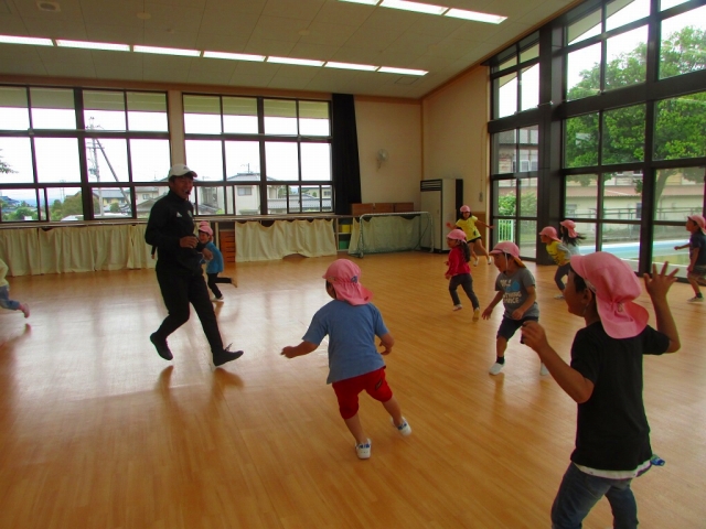 コーチがオニを行い、子どもたちは捕まらないようにたくさん走りました。