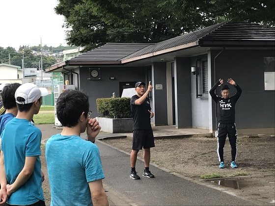途中で給水やストレッチを行い、芝田フィジカルコーチより、姿勢や走り方の指導もされました。