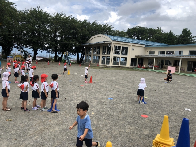 8月21日(水)松本短大幼稚園の年中さんと年長さんを対象に運動教室を開催し、松本山雅FCより、スクールコーチ藤本、フィジカルコーチの木内が参加しました。
