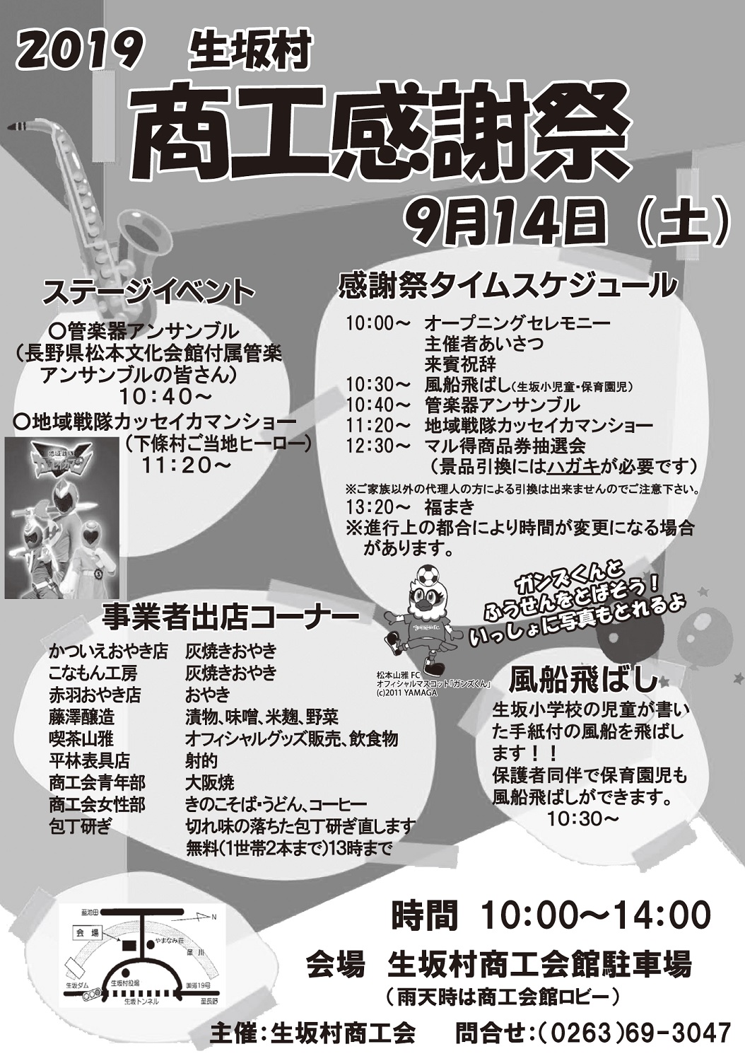 9/14(土)「2019生坂村商工感謝祭」参加のお知らせ