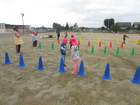 10月21日(月)安曇野市立堀金認定こども園の年長さん、58名を対象に巡回指導を行い、松本山雅FCからスクールコーチ寺島、松本山雅FCレディースU-15監督の藤原が参加しました。