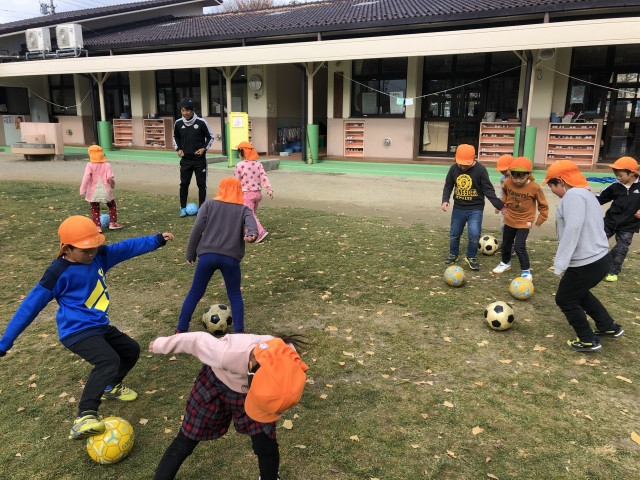 11月27日(水)のばら保育園の年中さん・年長さんを対象に巡回指導を行い、松本山雅FC U-12監督対馬、スクールコーチ藤本が参加しました。