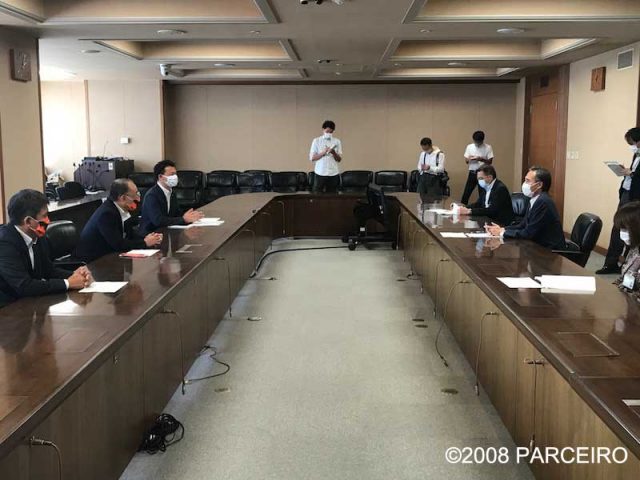 6月17日(水)、27日のJ2リーグ再開およびJ3リーグ開幕を前に、新型コロナウイルス感染予防対策に努めながらのリーグ開催ならびにホームゲーム開催についてのご理解をいただくため、AC長野パルセイロ、松本山雅FCの両クラブ代表が、阿部守一長野県知事を表敬訪問させていただきました。