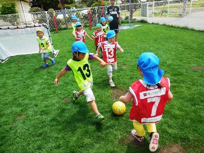 その後、4つのチームに別れて、ボール集め競争を行い、子ども達は夢中でボールを集めていました。