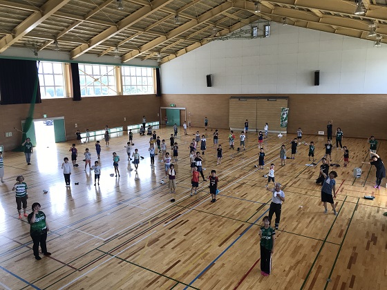 運動が終了後に体育館に移動して、ストレッチをして使った部位をしっかりと伸ばし、ほぐしました。
