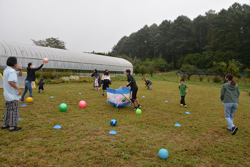 カラフルなボールを使って親子で一緒にたくさん体を動かしながら、楽しそうに会話をする姿が見られました。