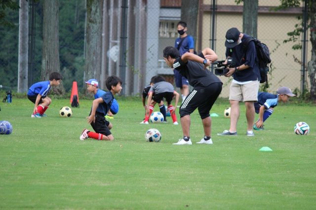 続いて行われた高学年グループの教室では、雨も上がり最高の芝の上での実施となりました。
