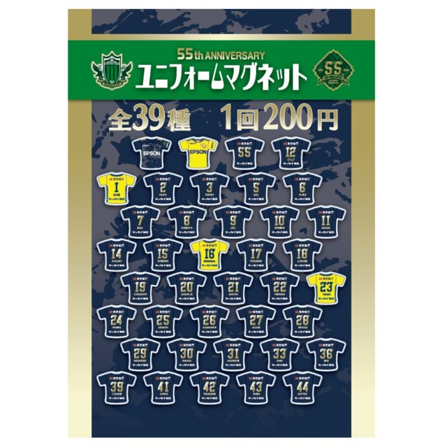 全35選手に、ガンズくん、No55、ユニフォーム前面デザイン2種を含む、全39種類の55周年記念ユニフォームマグネットが新登場です!