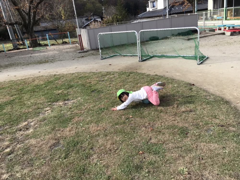 手を後ろに回して見事に頭だけで止めている子もいます。