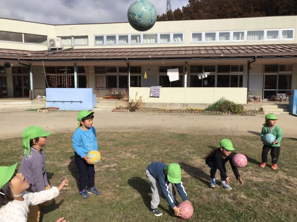 はじめは上手にキャッチできず色んなところで割れていた卵ボールですが、やればやるほど卵ボールが高く上がるようになり、しっかり手のお皿を作ってキャッチできるようになりました。