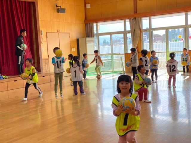 11月20日(金)安曇野市穂高認定こども園の年長さん対象に巡回指導を行い、松本山雅FCよりスクールコーチ原、大野が参加しました。