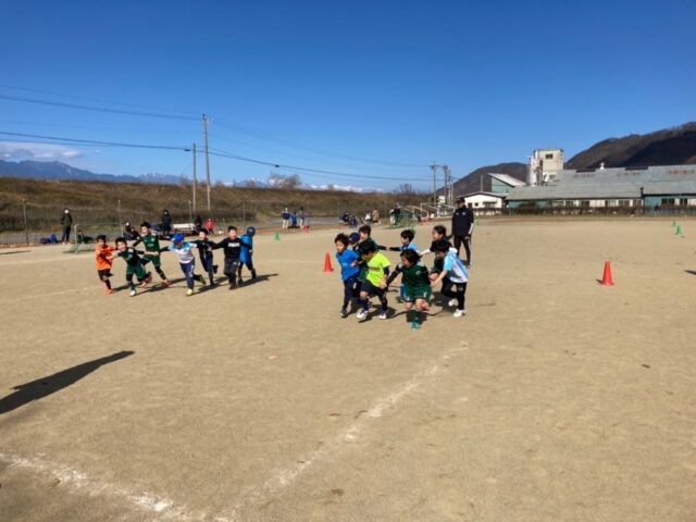 11月22日(日)平瀬運動広場にて年中・年長~小学校1~3年生50名を対象に「スマイル山雅 2020ラーラ松本サッカースクール」を開催し、松本山雅FCよりスクールスタッフの寺島、村木、原、金子、大野が参加しました。