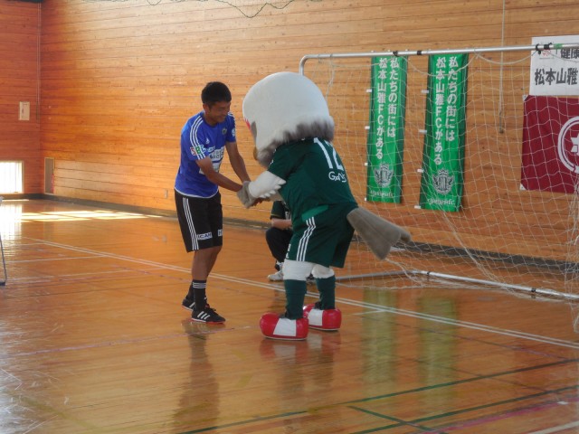 5月27日(水)、松本市西部体育館にて、「松本山雅FC 元気育成・健康増進プログラム キックオフイベント」が開催され、松本山雅FCより神田社長、塩沢選手、ガンズくんが参加しました。