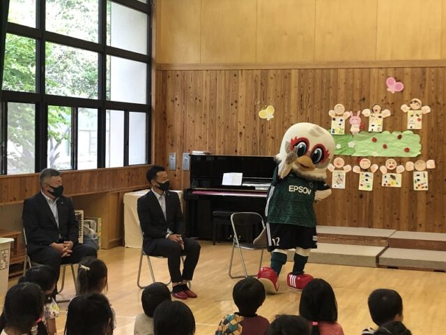 代表取締役社長の神田から園児の皆さんに「みんなや地域の人たちがよりよく生活できるように松本山雅は協力したいと思っています」とお話しました。