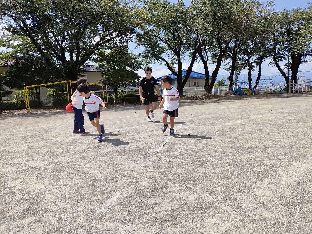 9月15日(水)松本短大幼稚園の年長さん、年中さんを対象に運動教室を行い、松本山雅FCからアカデミーフィジカルコーチ木内、スポーツクラブ事業今井が参加しました。