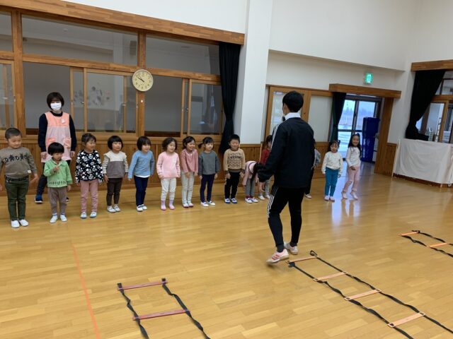 11月9日(火)小宮保育園の年中さんを対象に運動教室を行い、松本山雅FCからスクールコーチ原、大八木が参加しました。