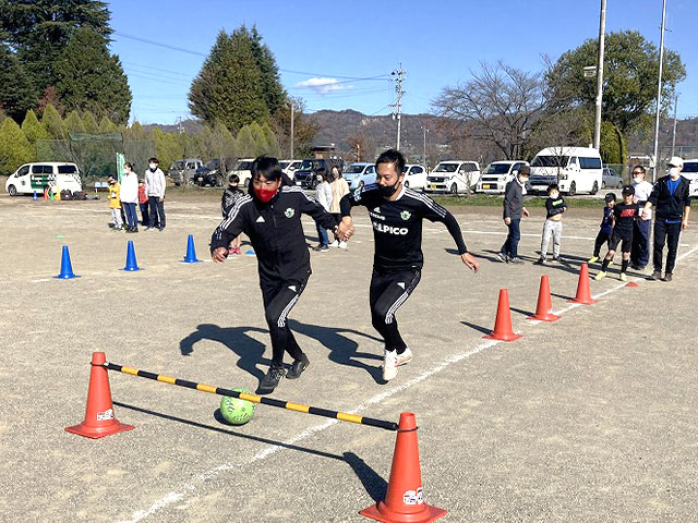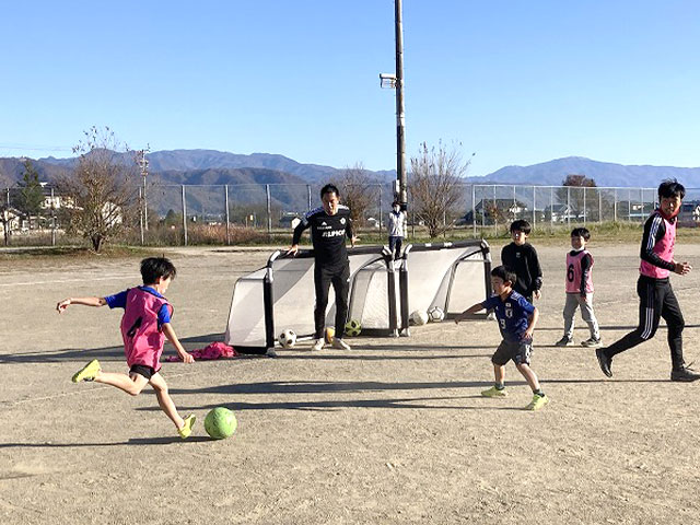 11月13日(土)穂高北小学校で行われた「穂高北小学校親子サッカー教室」に、株式会社松本山雅ホームタウン担当の片山とグラスルーツアンバサダーの山本、スクールコーチの大八木が参加しましたので、ご報告いたします。
