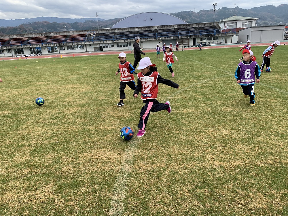 11月30日(火)飯田市総合運動場で、飯田市立松尾小学校の小学校2年生の約120名を対象にした「飯田市立松尾小学校 松本山雅FCサッカークリニック」を開催し、松本山雅FCスクールコーチの藤本と山﨑が参加しました。