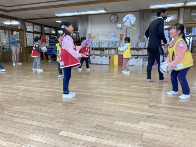 最初はなかなかうまくいかず悩む子どもたちも多く見られ、コーチのアドバイス一つでお友だちと協力して上手にできるようになりました。