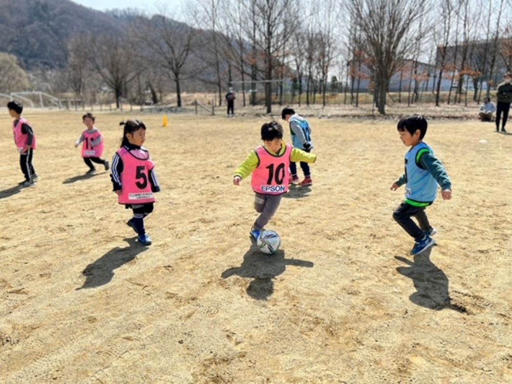 3月21日(月・祝)平瀬運動広場にて年中・年長、小学校1~3年生39名を対象に「スマイル山雅 2021ラーラ松本サッカースクール」を開催しました。