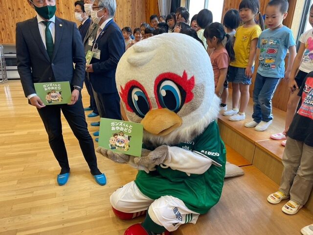 絵本「ガンズくんとあやみどり」は、松本山雅FCのホームタウン9市町村の保育園・幼稚園・認定こども園・小学校 198カ所に寄贈させていただきます。
