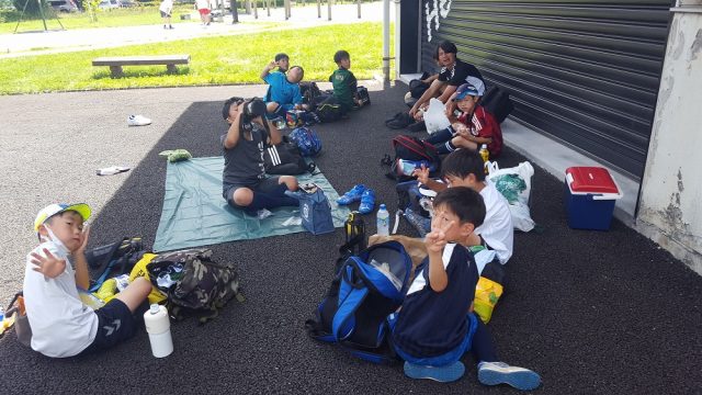 お弁当を食べた後は、下諏訪町健康フィールド人工芝グランドで諏訪校のスクール生と交流会を行いました。