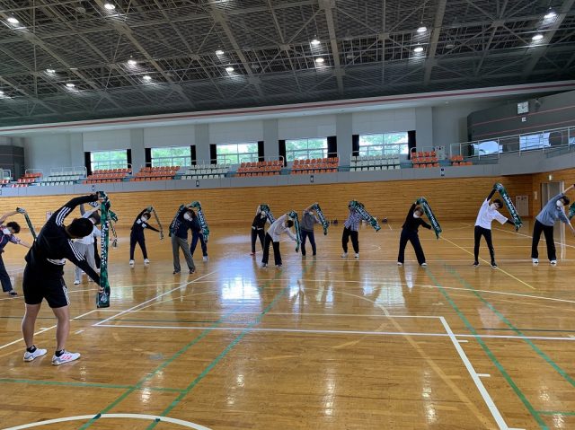9月8日(木)大町市総合体育館にて、大町市シニアクラブ連合会主催「松本山雅FC健康教室」が行われましたのでご報告いたします。