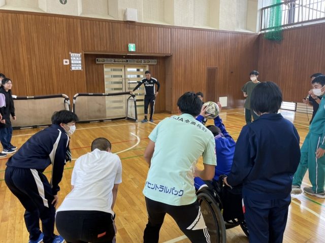 長野県寿台養護学校の高等部(高校1年生~高校3年生)の生徒、約40名を対象にサッカー教室を行いました。