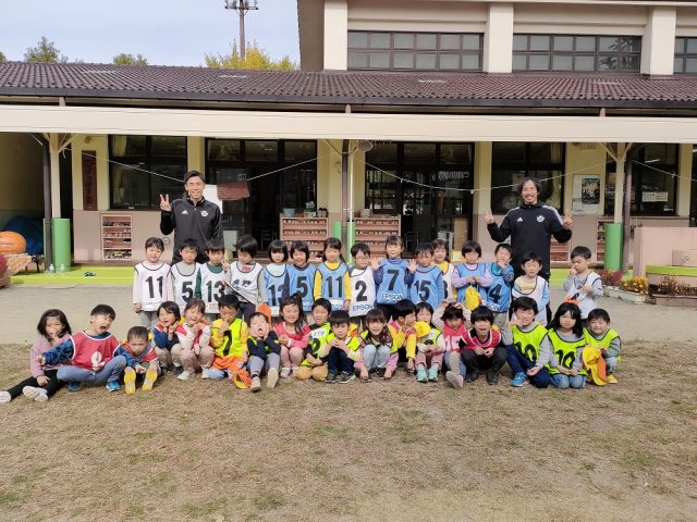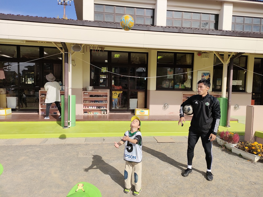 10月27日(金)松本市のばら保育園の年中組さん33名、年長組31名を対象に巡回指導を行い、松本山雅FCスクールコーチの原とスポーツクラブ事業チーフ今井が参加しました。