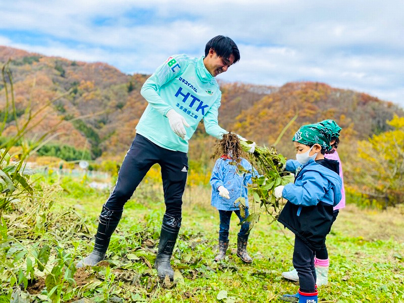 今回は稲福選手と片山クラブプロモーション担当が参加し、生坂保育園の園児と共に作業を行いました。