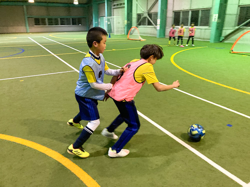 ボールを使った練習では、ドリブル、パス、ボールキープを行いました。