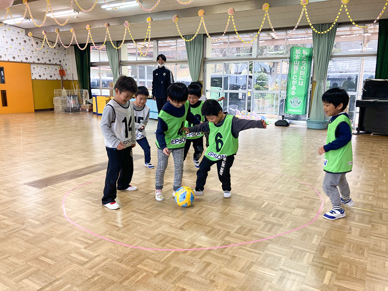 12月13日(火)高森町の下市田保育園 年長(さくら組)を対象に巡回サッカー教室を行いました。
